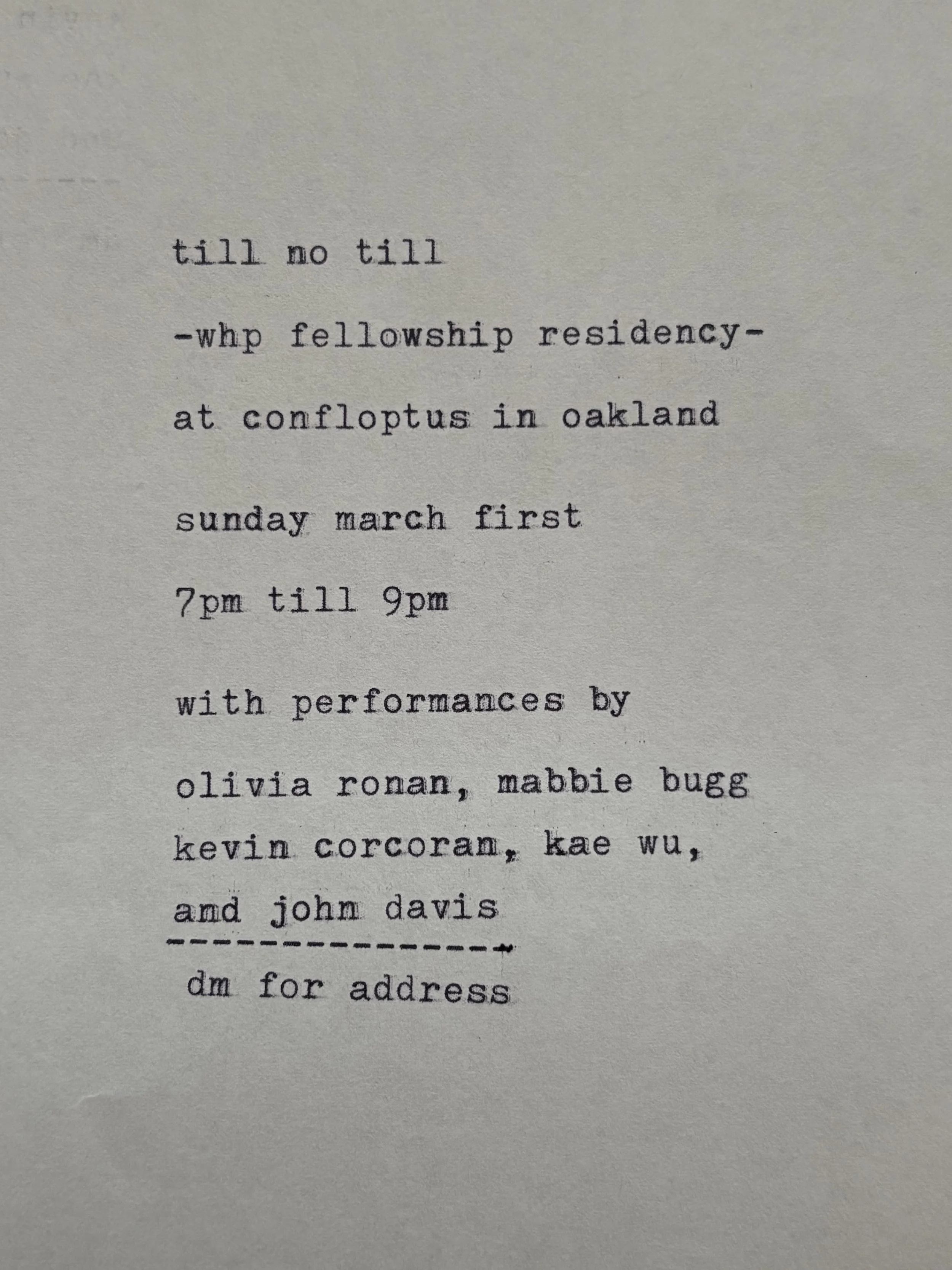 paige raina davis is a fellow of whp in residence at confloptus in oakland for the month of december. we will host her open door on the 28th from 4-7pm. join us…